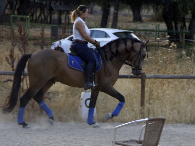 Indigo is the typical beautiful barock carthusian type of PRE, he has exceptional movements for dressage and is smart and a fast learner. As a stallion he is cool and easy to handle. Basic broken in with bases of natural horsemanship, now training laterals, trot extentions and flying change. He has super movements with a great overpass in walk and natural trot extention. He has a high rideabilty and we see him as a dressage/academic riding talent. Will be sold directly from breeder, APTO approved for breeding.